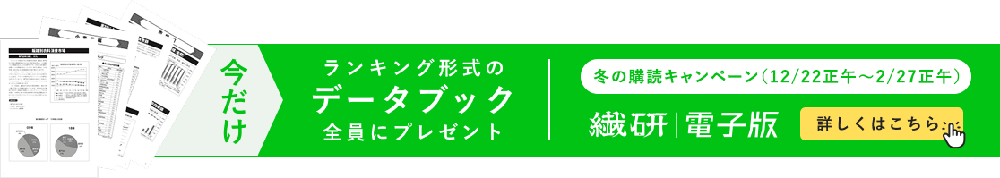 繊研電子版の単体プラン(月額2,992円)をお申し込みいただくと、その月の購読料が無料になります。