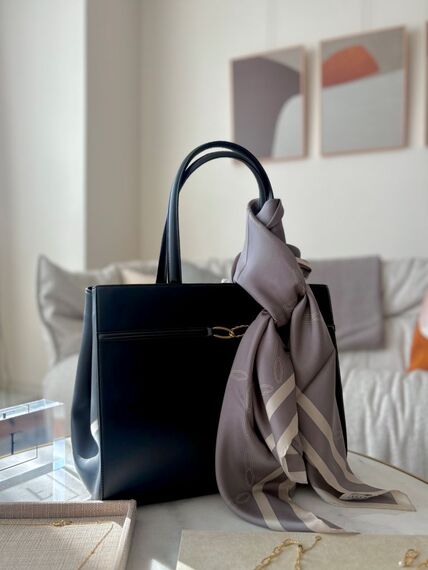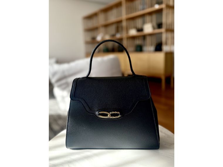 ユニティバッグは、ザリーニ氏とメラニア夫人に共通するビジョンを込め、シンプルながら存在感のあるトップハンドルバッグに仕上げた。シボのあるカーフレザーのボディーで、ライニングにはゴートレザーを使用。バッグの内外ともに上質で滑らかな手触りが魅力だ。内側には固有のシリアルナンバーを刻んだゴールドのオーバルプレートが付く。色は黒のみ。参考価格45万円。