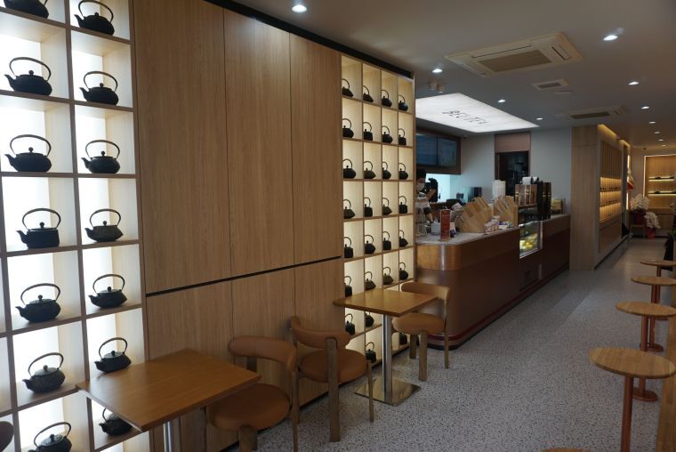 Mサイズで税込み848円から。公式ライン登録することで、会員価格で買える独自サービスも開始した。店内には多数のやかんを配置し、中国茶を想起させる雰囲気を意識した。