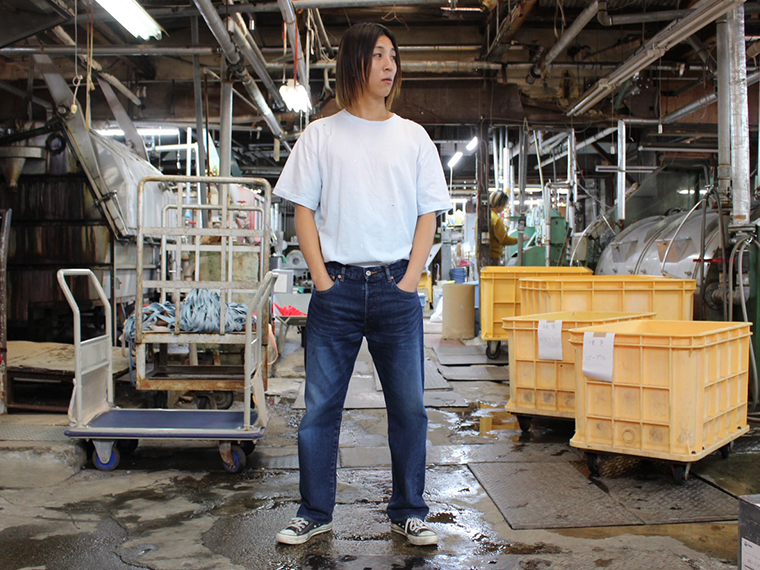 今回のジーンズは、日本人の体形に合わせ、現代のライフスタイルにフィットするようにブランドをブラッシュアップして打ち出すもの。洗い加工を自社で手掛けるとともに、スリ加工、縫製、プレスはそれぞれにたけた児島の協力工場と物作りする。
