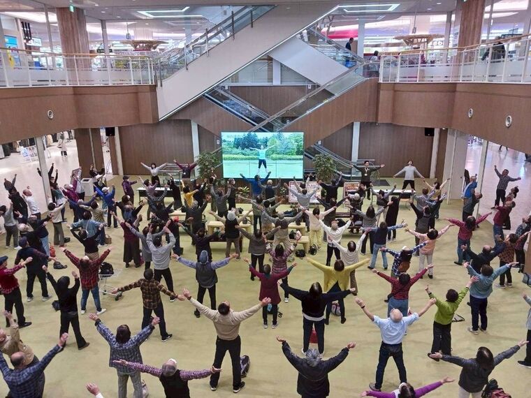毎週木曜日の朝、シニアの健康増進に向け開催しているラジオ体操は、1回の参加ごとにスタンプを押してもらえ、スタンプ4個でコーヒー1杯と引き換えることができる。21年の開始から参加者は増え続け、昨年11月には1回のラジオ体操に過去最高の231人が集まった。