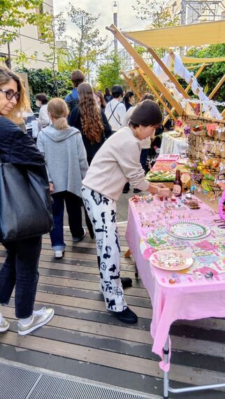 きっかけは、マーケットを運営する和久生活社の代表、中島和彦さんが22年11月、東京・自由が丘の商業施設トレインチに出店した際に運営会社に企画提案したこと。話が迅速に進んで翌年1月、成人の日に手作りアクセサリーを中心に15社でスタートした。結果は自由が丘駅に近い立地もあって軒並み5万~6万円を売り上げた。そこから毎月開催することとなって「人が人を呼ぶ好循環が生まれて街のにぎわいにも貢献」し、出展者も35~40社へと増えた。