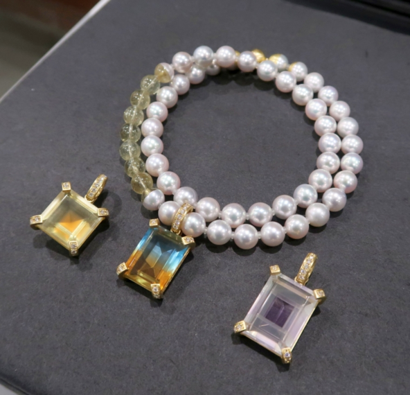 国際展示会で受賞した「フュースドジェム」を公開したファインジュエリーの「ユタイ」。複数の天然石を融合した色彩に引き込まれる