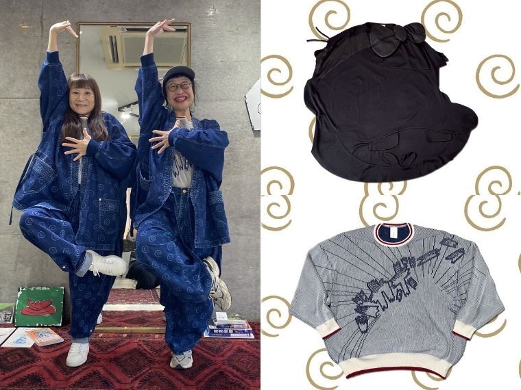 宇津木がデザインしたアイテムに、バカボンに登場するキャラクターなどが散りばめられた。デニムの作務衣(税込み11万円)にはバカボンの頬の渦巻きモチーフ。セーター(7万400円)やソックス(2640円)には赤塚特有のタッチの「バカボーン」の文字が編み込まれている。デニムのパンツ(5万9400円)には、バカボンの姿が影絵のように染め抜かれている。