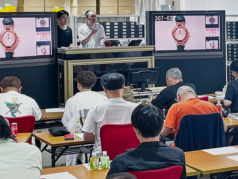 新品を販売する一次流通にはなじみのないリユース業界のオークション。計画仕入れが出来ないリユース小売企業にとっては、欠かせない機能だ。ビジネスを回す上で「必要な〝潤滑油〟」(コメ兵の中神太志さん)といえる。主催者がバイヤーの側に回ったり、他のオークションに参加したりと動きは複雑だ。コロナ下でオンライン開催が一般化、市場参加者が増え競争が激化するオークションの現場を取材した。