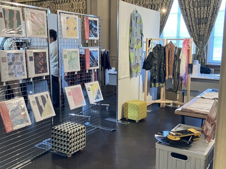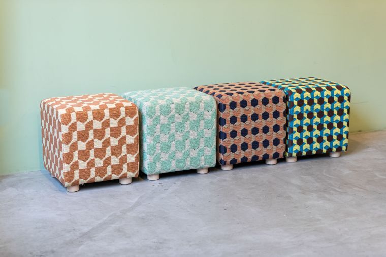 ジャカード織りの生地で婦人服や服飾雑貨を展開する「POLS」(ポルス)が、インテリア分野に踏み出しています。10月に大阪で初開催された展示会「糸_の祭展」(イトヘンノサイテン)では、2年前から販売するスツールと試作品の壁紙も展示しました。インテリア用途に可能性を見出す営業担当の大岡彩織さんにうかがいました。
