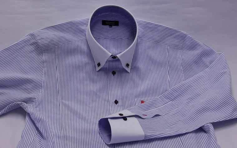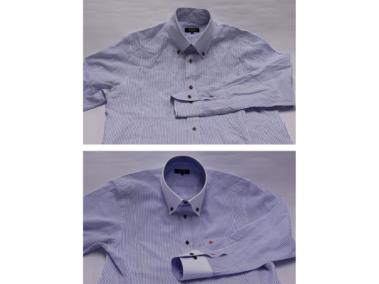 襟とカフスを修理した後のシャツ