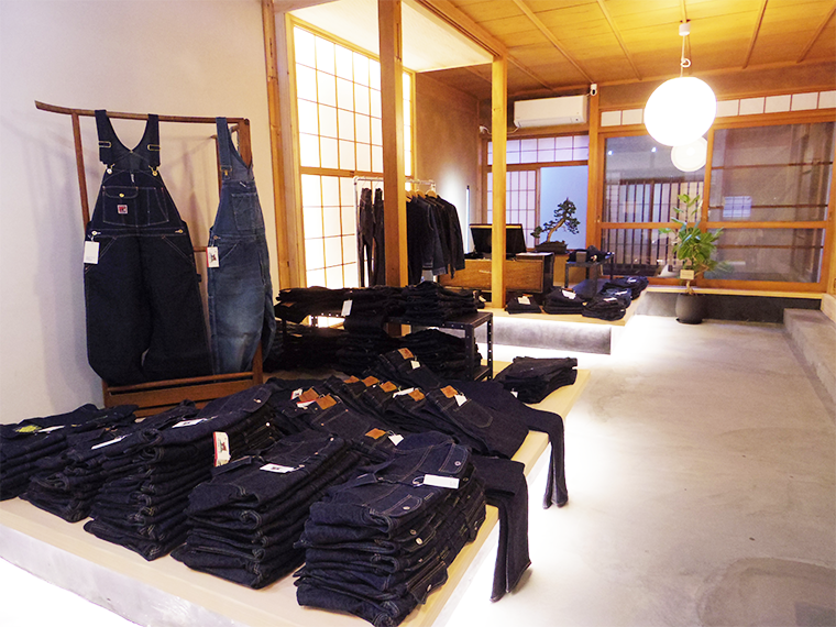 2フロア約150平方メートルの店舗は、元々は住居だった物件を活用して実現した。1階は「TCBジーンズ」「コジマ・ジーンズ」「オモトデニム」「イトナミ」の4ブランドをセレクト。障子や中庭、畳のある日本的な空間で商品が楽しめる。