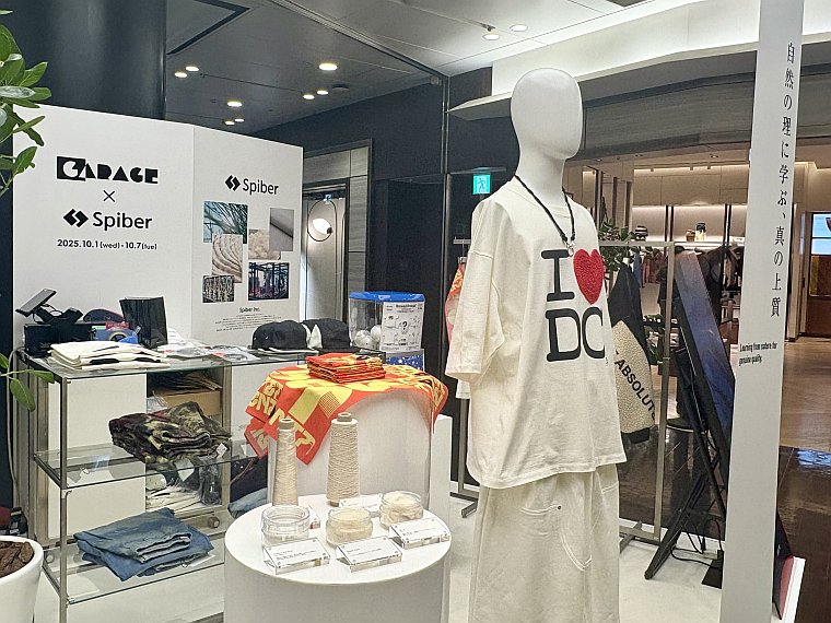 阪急メンズ大阪の「ガラージュ・D・エディット」は、スパイバーが開発した人工たんぱく質「ブリュード・プロテインファイバー」を使ったアイテムの期間限定店を10月1~7日に開催した。