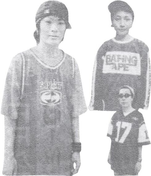 メッシュのTシャツが男性たちに大人気だ。大きなナンバーやロゴが入ったスポーツユニフォームのようなシャツで、色は原色。NBA(米プロバスケットボール協会)の選手みたいなダボッとしたタンクトップや自転車ブランドの長袖シャツなどもカッコよく着ている。キャップやサンバイザー、リストバンド、スケートボードがアクセサリー。「ヒップホップとスポーツを混ぜ合わせたってこと」。これが基本だ。