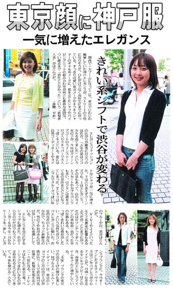 関西で一大ブームになって2年。東京でじわじわ繁殖していた神戸エレガンスが、ストリートの主役になりそうだ。OLだけでなく高校生にまで広がっている。すっきり可愛い東京メイクやキラキラシャドーのギャル系メイクに、襟を立てたシャツやパイピングニットの組み合わせが何とも微妙な雰囲気。つい最近まで「着たことなかった」という〝新規参入者〟がほとんどだ。