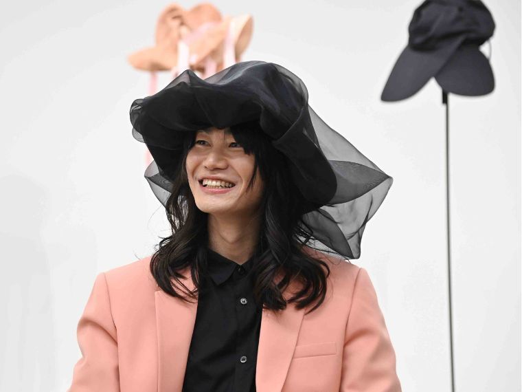 日爪ノブキと出会ったのは、数年前の「ロエベ」のショーの後だった。そこで、彼がロエベの唇のディテールの服を作ったことを知った。帽子デザイナーとして「ヒヅメ」を手掛けるほか、さまざまなブランドとコラボレーションをしている。その物作りの姿勢を聞いた。