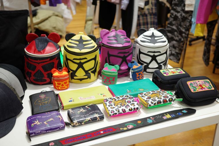 「誰かのヒーローになれる服」をコンセプトとする「ユキヒーロープロレス」は、プロレスやヒーローの魅力を服で表現する独創的なブランド。プロレスのシーンや技を服のデザインに落とし込んでいる。例えばジャカードデニムのジャケットには競技の判定や進行役を担うレフェリーを柄で表現している。6万6000円。このほか、プロレス技のラリアットの動きができるように脇下の生地量を工夫したTシャツ(1万2100円)や、実際のプロレスマスクの生地を使ったポーチ(2万8600円)などがある。『秘密戦隊ゴレンジャー』と協業したTシャツも揃う。モチーフはポップでありながら、日本全国の産地へ出向いて職人技術を生かした服作りをしているのも特徴だ。