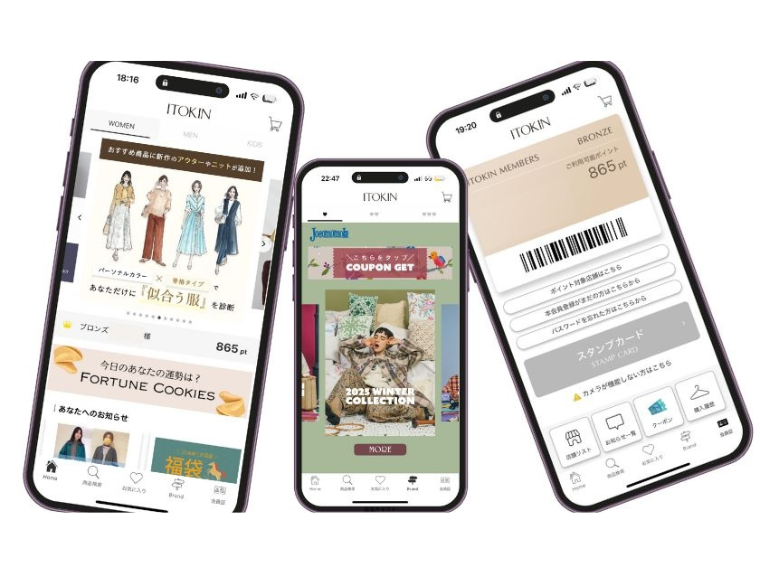 イトキンはOMO(オンラインとオフラインの融合)推進に向けた基盤整備を着実に進めている。10月には、購買行動のハブとして位置付ける公式アプリをリニューアルし、日常的に使いやすい環境を整えた。アプリ経由の売り上げを高め、EC全体の底上げにつなげる。