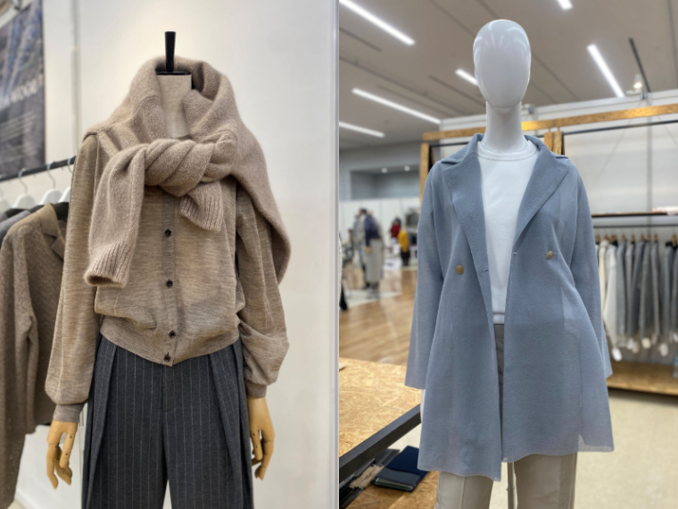 26~27年秋冬向けのニットは、軽さと薄さが鍵になりそうだ。11月に開かれたニット合同展のジャパン・ベストニット・セレクション(JBKS)2025では、長引く残暑や暖冬で重厚なテキスタイルの需要が低迷するなか、糸や編み組織を工夫し、快適な着心地に配慮した。