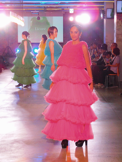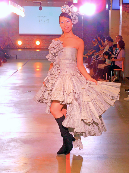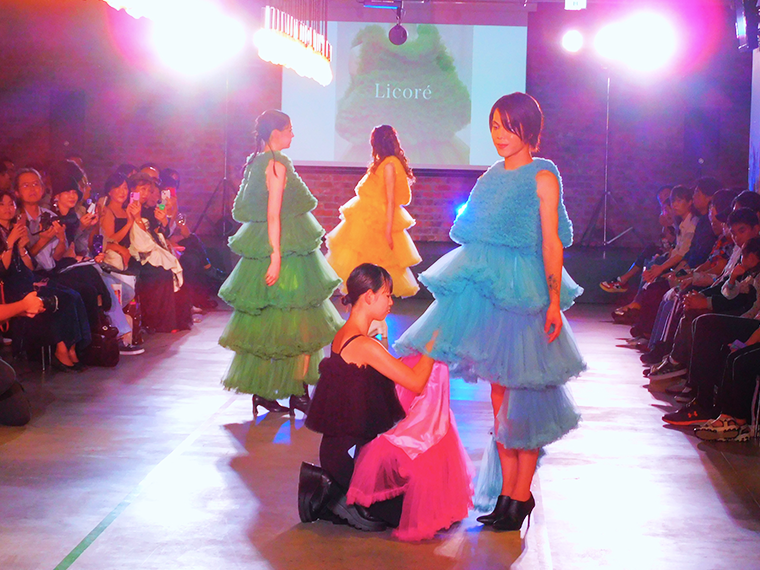 ジェンダーレスブランドのリコレは、関西アライモで念願のデビューを果たした。原色の鮮やかなドレスのパーツをステージ上で別のモデルに付け替える演出で変化の楽しさを表現した。こども食堂でのショー開催など、社会的活動にも積極的なTストーリーは新聞紙を素材にしたドレスで登場。SDGs(持続可能な開発目標)、ユニバーサル志向を体現した。