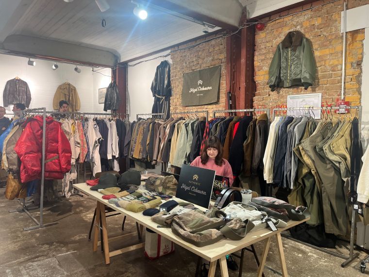 「THE UNION」の大きな特徴は、長い歴史や伝統、クラフツマンシップを重んじるヘリテージブランドが数多く出展している点にある。会場にはセルビッチデニム、レザージャケット、ワークウェア、ミリタリーウェア、シルバージュエリー、ブーツ、テキスタイルサンプルなど、トレンドに左右されないクラシックなアイテムが並んだ。