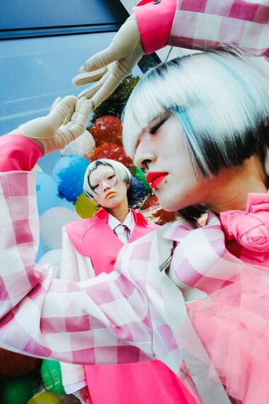 倉敷の路地で光と戯れる反骨の意志、穏やかな街並みに揺らぎを生む鮮やかなヘアカラー、親しみやすさを土台に一歩先の可愛らしさを表出させるスタイル。髪や化粧、服装は個人の趣味に矮小(わいしょう)化されるものではなく、都市のディテールを形成する社会的行為であることを、三者三様のアプローチで可視化しました。