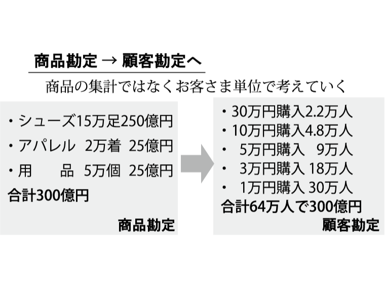 この連載のタイトルにあるLTV。ライフタイムバリュー=顧客生涯価値と訳されますが、1人のお客様が生涯にわたって自社にもたらしてくださる利益の合計です。「常連のお客様は大事にしよう」私も店舗勤務時代によく言われましたが、〝常連〟の定義はなんでしょう? 週に2回来てくださる? 毎月買ってくださる? 商材によって頻度は変わるでしょうが、例えば全社売り上げ金額を1年間の全レジ通過件数で割ると、全顧客の平均の客単価がわかります。さらに会計時に顧客IDを読み取っていれば、会員だけの売り上げがわかります。その金額を会員のレジ通過件数で割れば会員の平均客単価のほか、会員一人ひとりの年間購入回数もわかります。一般的には会員の平均客単価の方が、全顧客平均よりも高くなります。年間購入回数の多い会員は、客単価も年間購入金額の合計も高くなっていきます。この〝購入回数〟も〝客単価〟も高いお客様を〝常連〟と定義づけるとわかりやすくなります。