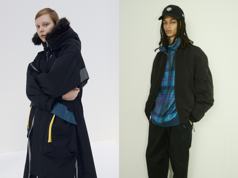 2人が着目したのはブランドを象徴するオーバーサイズ、マルチウェー、古着をベースにしたミリタリーの三つ。メンズが着てゆとりのあるサイズ感をベースに、「アヴィレックス」と3者協業したMA-1(税込み7万400円)やファスナーとスナップボタンを両方配したコーチジャケット(7万2600円)、ワークパンツ(4万6200円)などを揃えた。