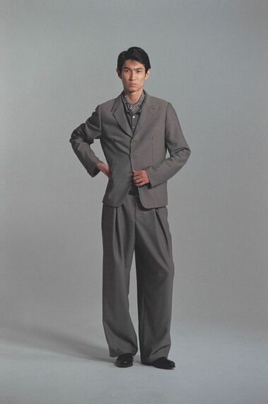 もう1人のゲストデザイナーは、イスラエル出身でパリを拠点とする「ヘド・メイナー」。ユダヤの宗教服の伝統的なテーラーリングを投影した、オーバーシルエットのユニセックスウェア。メンズのテーラーメイド、スポーツ的要素が加わった個性的なフォルムの服は興味深い。