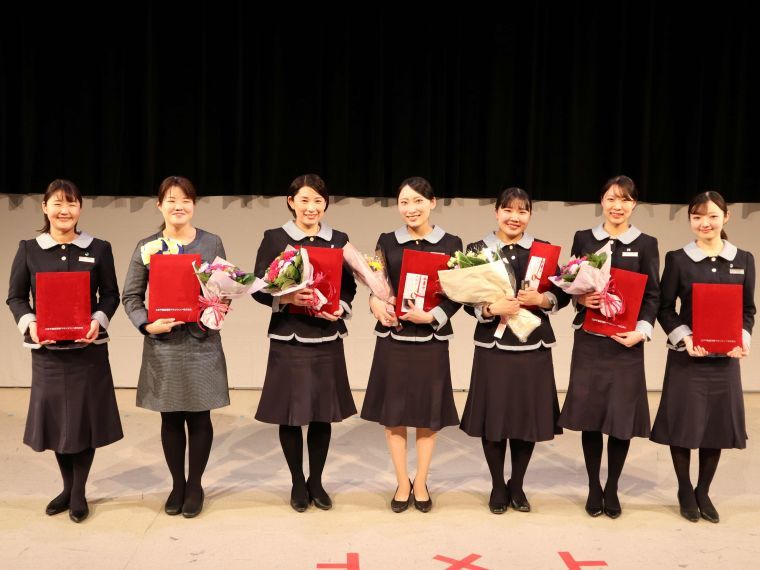 優勝はららぽーと富士見の山崎杏実さん。準優勝はラゾーナ川崎プラザの大濱瑠那さん、審査員特別賞はららぽーと立川立飛の荒井恵里さん、ららぽーと門真・三井アウトレットパーク大阪門真の安井涼葉さん、繊研新聞社賞は三井アウトレットパーク滋賀竜王の伊藤亜理紗さん、新人賞はららぽーと新三郷の蔵田エマさん、ららぽーと磐田の若林鈴夏さんがそれぞれ受賞した。