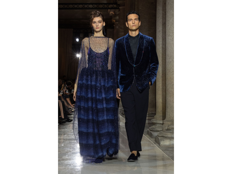 「ジョルジオ・アルマーニ」は、アーカイブ展を開催中のブレラ美術館でショーを行った。アルマーニ自らが手掛けた最後のコレクションであるとともに、ブランド設立50周年の記念でもあり、大がかりな企画となった。
