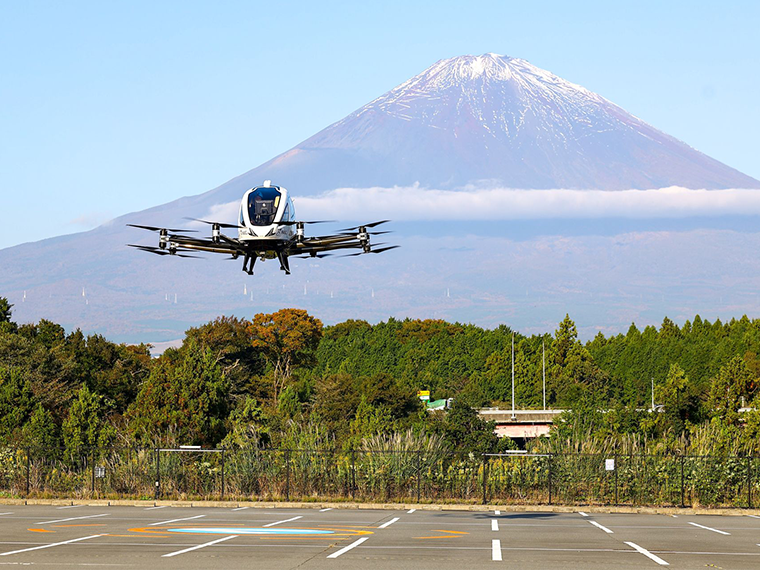 三菱地所と三菱地所・サイモンは、御殿場プレミアム・アウトレットで、eVTOL(空飛ぶクルマ)の実機によるデモフライトを実施した。三菱地所は「国内の商業施設で空飛ぶクルマ実機による飛行は初」とし、社会実装に向けた一歩として期待を寄せる。