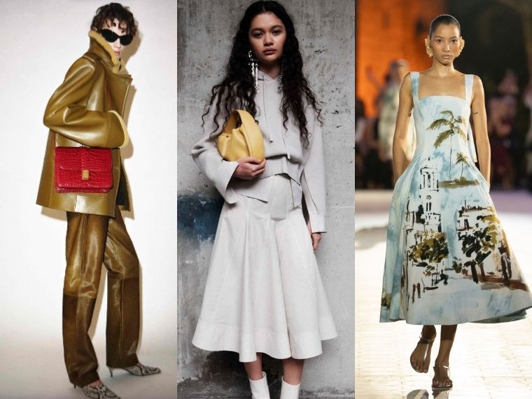 ニューヨークのブランドの26年プレフォールコレクションは、シャープなテーラードジャケットとシャツがある一方で、構築的なカーブを描く、もしくはフリンジで流れるような動きを加えたドレスが目立つ。1ブランド40体から60体と、プレフォールに力を入れていることがうかがえる。