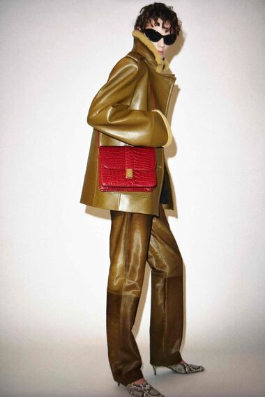 「ケイト」は、着心地の良いプロポーションとフィットにこだわりながら、服とボディーの関係を探った。マニッシュとフェミニン、シャープとソフトの融合をより官能的に表現してみせる。レザーはその厚みと質感を保ちつつ、ボディーを包み込むジャケットやホールターネックのトップに仕立てる。