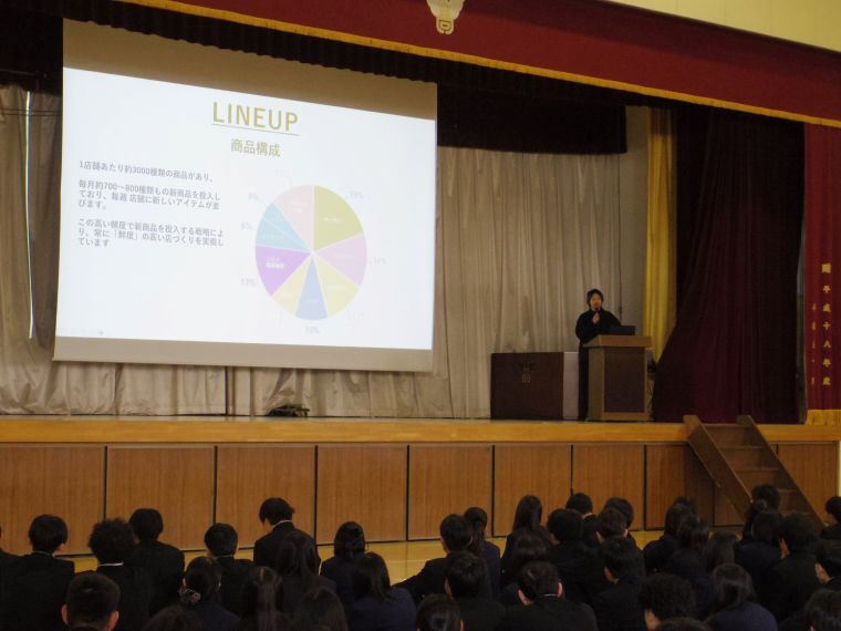 パルグループホールディングス(HD)は3月18日、奈良県立高田高校の探究特別講座に参加し、「スリーコインズ」や奈良県下市町で運営する複合型商業施設「キト・フォレストマーケット・シモイチ」(キト)に携わる社員が講演した。同校の1、2年生720人が参加した。