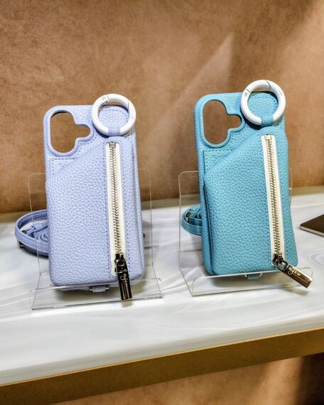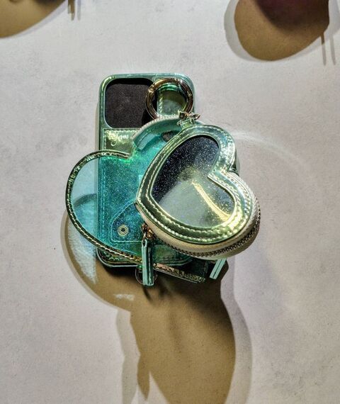 エジューは、アイコンとなっている「カデナジップフォンケース」で、白リング付きを発売する。色は淡いライラックとスカイブルー。税込み9350円~1万450円。人気が続くハート型ポケット付きスマホケースは、サンフラワーとオーシャンの2色を加える。透明で大きさの異なる二つのハート型ポケットが付き、物を入れると自立する。1万450~1万2100円。