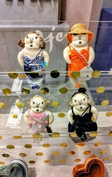 ミュベールとの協業品は「ミュベールグランマチャーム」。4種類あり、エジューのスマホケースなどを身に着けている。2万5850円。