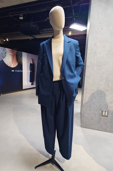 今秋冬からレギュラー商品も村田がディレクションに入っている。それらとのコーディネートのしやすさを踏まえつつ、協業コレクションはさらに上質な素材を使って「都会的なシャープさと暖かさが同居する」ように表現した。カシミヤ混のダブルフェイスのロングコート(税込み4万9000円)は、さりげなく丸みのあるシルエット。糸染めから取り組んだトープ、ダークブラウンの2色がドレープに深みを出す。オーバーサイズ仕様のダウンコート(5万5000円)は、フロントにダーツを入れてバスト周りをすっきりと見せる。ウール混のテーラードジャケット(2万7000円)はサイドをパネルで切り替え、曲線のカットで腰のラインを柔らかに表現する。縦のラインが際立つように、メンズの機能的な作りをそぎ落とした。