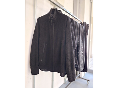 きっかけは、両デザイナーが3年ほど前から登山を楽しむようになったこと。登山用途のウェアで「機能性を追求すると、普段着ている服から乖離(かいり)するので、自分らしい服を考えた」と秋元は話す。一例は、軽量で保温性、吸湿・通気性を備えた「プリマロフト・アクティブエボルブ」(100グラム/平方メートル)のブルゾン(税込み3万5200円)。通常はライナー用途で使われるが、通気性の良さを生かして単体で製品化した。アウター、ミッドレイヤーとして使え、コンパクトに収納できる。他にもメリノウールのハイゲージ天じくの長袖シャツなど、街着として違和感のないシルエットに配慮し、ウェア3型、小物4型を揃えた。