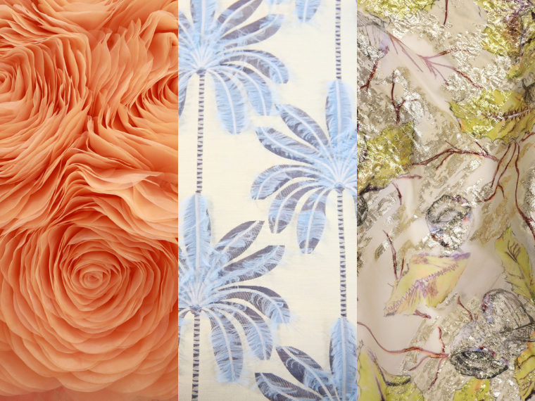 27年春夏向けの国際素材見本市プルミエール・ヴィジョン(PV)パリは、色や花柄、花モチーフで華やかなテキスタイルが揃った。カットジャカードや刺繍など表面に動きを加えるテクニックも見られた。