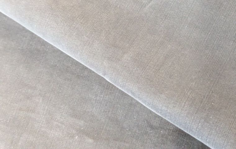 ビンテージ感の表現としてフィブリル加工の生地が多く見られた。スタイレム瀧定大阪は、キュプラとポリエステルを交編した高密度ジャージーにフィブリル加工を施した。キュプラ特有のぷりっとした反発感や、ドレープが美しい。ダイショーファッションテキスタイルも綿・キュプラにフィブリル加工した織物を提案。高密度ウールサージの引き合いも良かった。