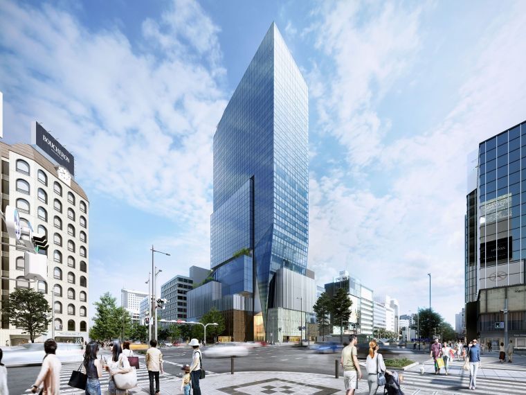 心斎橋クオーツは地上28階建てで、16~28階にはホテル、8~14階はオフィスとなる。