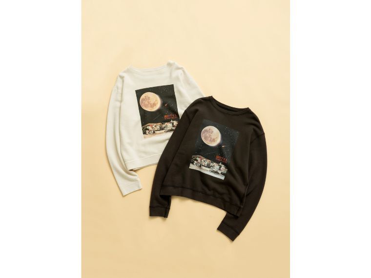 〝ビンテージミックス〟のスタイルを意識し、LAでビンテージショップを営む大人の女性が選びそうなアイテムをイメージした。風合いやディテールにこだわり、ビンテージ調に仕上げた。半袖のプリントTシャツ(3種類、税込み1万7600円~2万900円)やスウェットシャツ(2種類、3万4100円と4万2900円)、フリースジャケット(5万600円)、フルジップパーカ(3万9600円)、カーゴパンツ(4万5100円)など。