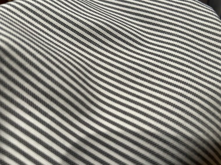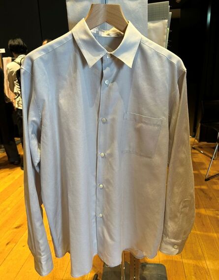 今後、春夏向けにシャツ地を強化する。経糸がシルクの生糸、緯糸がコットンというぜいたくな仕様で作った。コットンの生地と比べて、よりしなやかで美しい光沢がある。糸をしっかりと打ち込んでおり、張りがあって仕立て映えする。