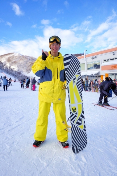 黄色づくしで目立っていた日本人男性はウェアもボードも「ブックオフ」で入手した。