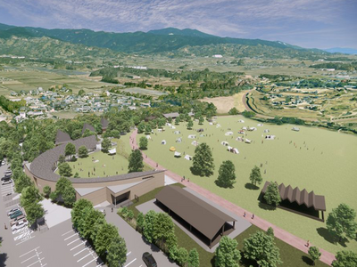 キャンプ場は160サイト分のスペースを確保し、九州最大級となる。宿泊施設は物見やぐらをモチーフにしたコテージ(3棟)と竪穴住居をイメージしたキャビン(6棟)を建てる。それぞれ26年4月に開業。