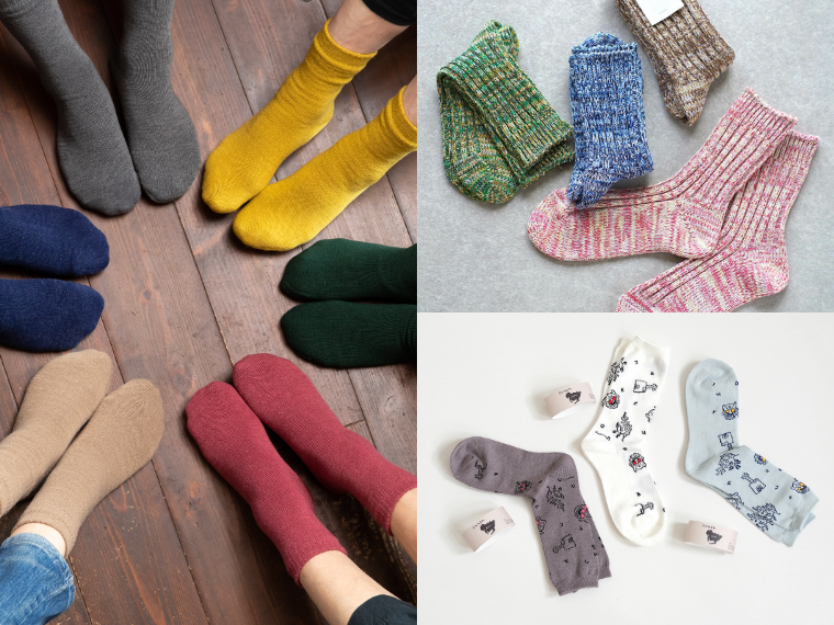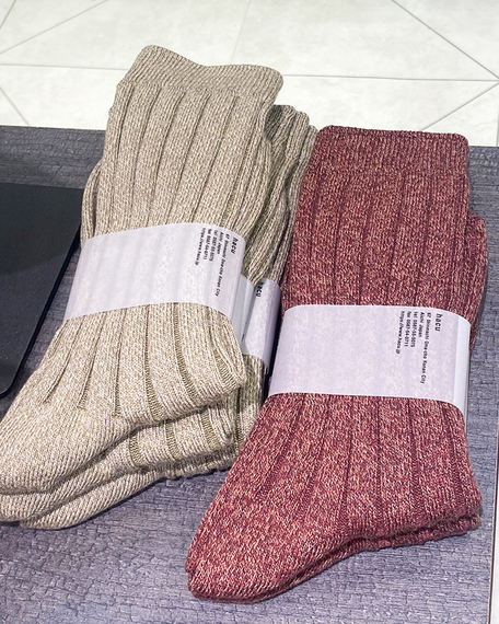 靴下メーカー、レッグニット中村を母体とするブランド「靴下のhacu」(江南市)は、「シンプルで、ちょっとかわいい靴下」をテーマとする。履き心地や肌触りのよいハイゲージの靴下に加え、豊富な柄のバリエーションが特徴だ。定番は太リブソックスで、しっかりしたリブ編みとフィット感が人気。