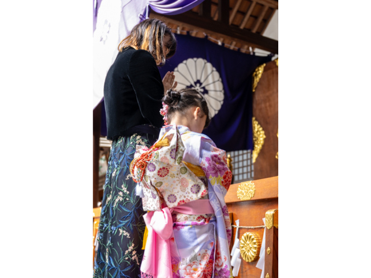 七五三を祝う会は、東京都内のひとり親世帯を対象に、親子で特別な1日を過ごしてもらうためのイベント。着付けや子供のヘアメイク、プロカメラマンによる撮影、東京大神宮への参拝、ホテルでのお祝いランチビュッフェなど、親子で楽しめる多彩なプログラムとなっている。