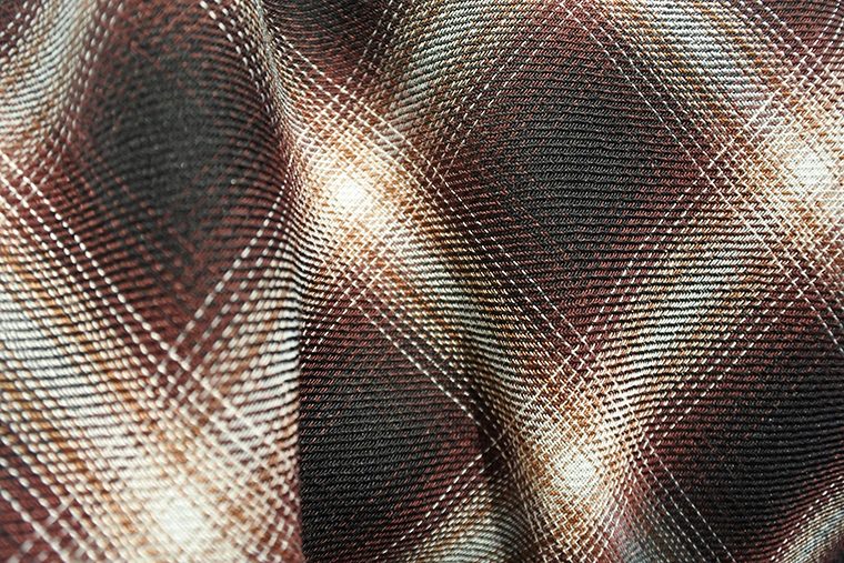 時代を超えて愛される普遍的なスタイルの「ナイスフレーション」は、レザーやスエードのような質感など独自性を加えた。加工を施した薄地のサテンは、レザーのような高級感のある表情を付与。定番のチェック柄はキュプラを使い光沢感を加えたほか、オンブレー調に仕上げカジュアルながら大人らしい〝きちんと感〟のある見た目にした。