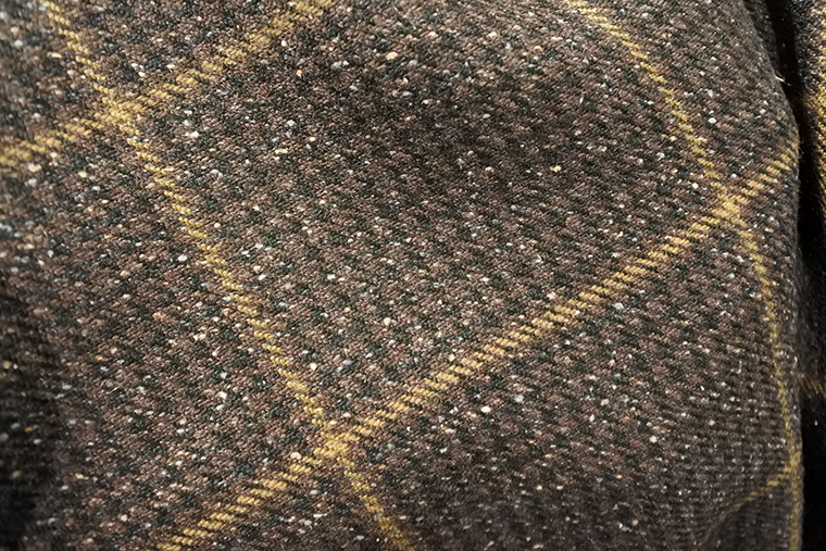 クラシックをベースにしつつ日常での着心地も重視した「アーバンハーモニー」は、春と秋の立ち上がりに向けて梳毛調素材やデニムを充実。シルクネップ糸を使ったツイードは、ミックス感とビンテージ感を付与し、シックな風合いを持たせた。インディゴブラックのデニムは通勤でも使えるように落ち着いた色合いにし、高級感を持たせた。