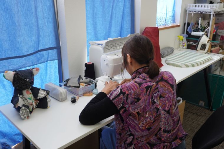 たなごころでは約40人の就労者が働き、うち7割がデジタルなどテクノロジー関係に従事。残りの3割は、細かな手作業を得意とする就労者で、技術を生かし7年ほど前から裁縫事業も推進してきた。
