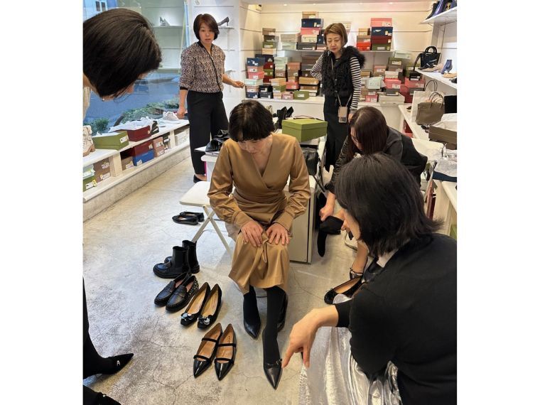 婚活に取り組む女性グループが来店。インポートシューズが初めての人も新しい靴との出合いを楽しんだ
