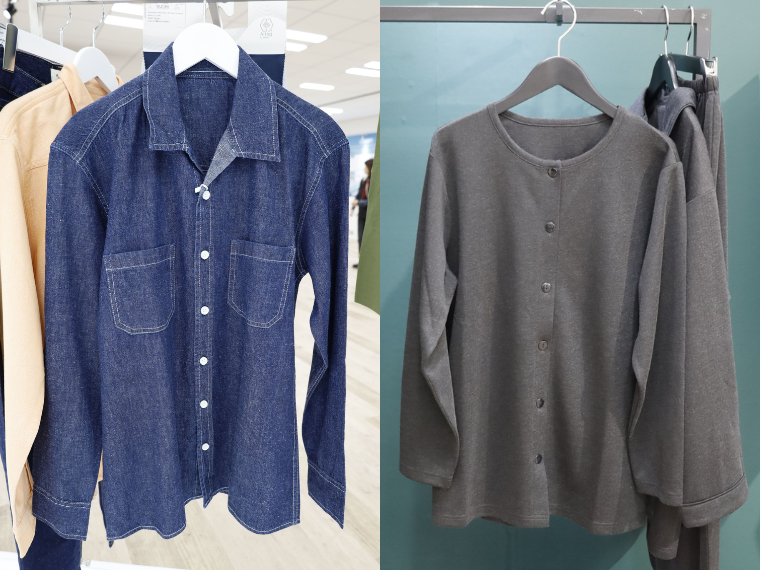 インドのリジェネラティブコットンも披露。現地農家を支援するNPO(非営利組織)やGHG(温室効果ガス)削減・定量化に実績を持つパートナーと3社協業し、農地・農業を再生する現地調達モデルを構築。土壌改善などを行うほか、綿花栽培から製品化までトレーサビリティー(履歴管理)を確保し、二酸化炭素排出削減・除去量などの算定を行う。関心を持ったブランドに即時に提供できる体制を整えた。