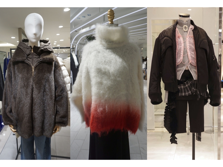 売り上げは5%増。アウター類は立ち上がりから売れ行きが良く、消化率が前年に比べて高かった。ショート丈やコートとジャケットの中間アイテムが良かった。セーターは1枚で着られる装飾性やデザイン性のある商品が売れた。「事前にルックの画像を見て問い合わせをする顧客が増えている」と、吟味して本当に気に入った商品を購入する傾向が強まっている。11月はクリスマスなどドレスアップしたハレの場に向けて、大型のカプセルコレクションを相次いで企画する。